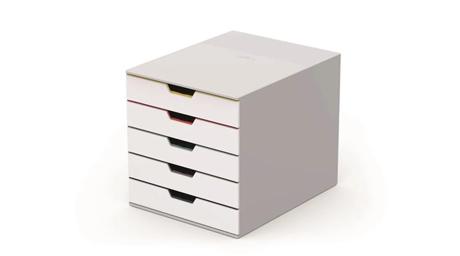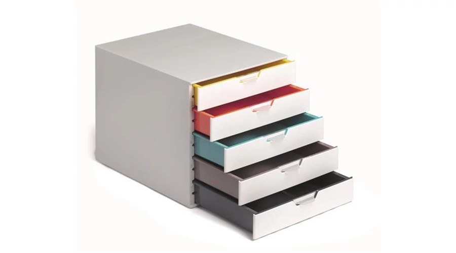 Elegáns irattároló 5 színes fiókkal, melyek segítik a rendszerezést és a tájékozódást.