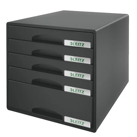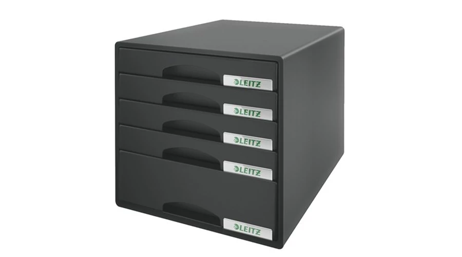 Irattároló, műanyag, 5 fiókos, LEITZ "Plus", fekete