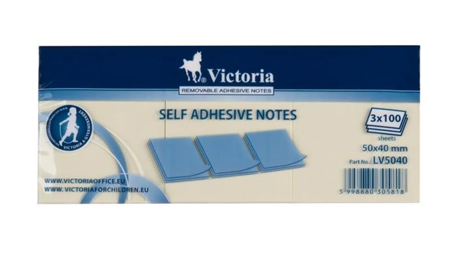 Öntapadó jegyzettömb, 50x40 mm, 100 lap, VICTORIA OFFICE, sárga