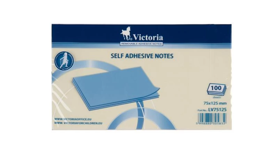 Öntapadó jegyzettömb, 75x125 mm, 100 lap, VICTORIA OFFICE, sárga
