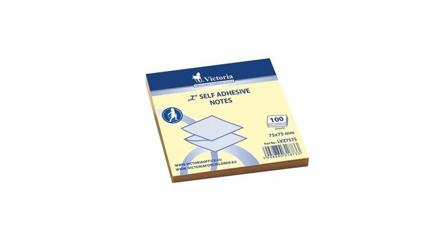Öntapadó jegyzettömb, "Z", 75x75 mm, 100 lap, VICTORIA OFFICE, sárga
